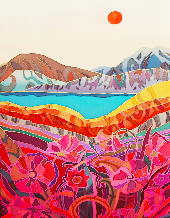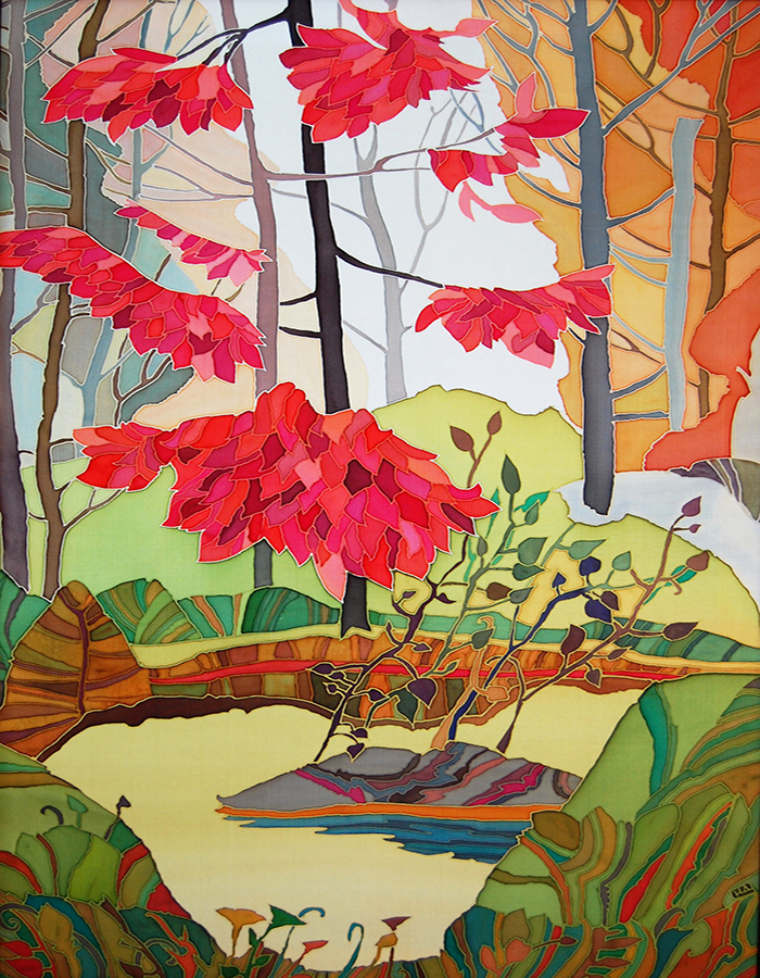 Silk painting has been a primary fascination for me for over a decade. I enjoy exploring the diverse effects that come when I apply paint to silk. This, further, sparks my creativity. Some of my work focuses on nature and are inspired by landscapes, other works are more imaginative. I am interested in the emotional impact of composition and its ability to enhance the meditative influence by arranging shapes and colors and bringing into play the diversity of forms. I find that silk painting is the best medium to do that.