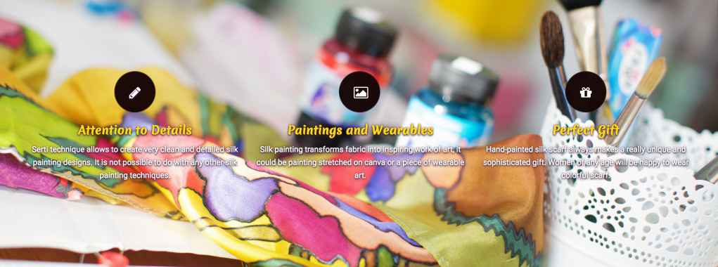 Usually, I find inspiration in nature around me. I observe, and I listen, I explore, and paint. I love to learn new painting skills, but the Serti silk painting technique will be always my favorite one.